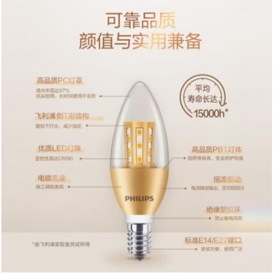 e14螺口led灯泡三色变光超亮蜡烛灯泡拉尾水晶小螺口吊灯家用节能 三色变光【6.5瓦金底拉泡】12只